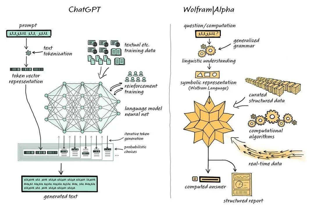 但如今 ChatGPT 和 Wolfram|Alpha 的互补,给NLP领域提供了更上一层楼的可能。