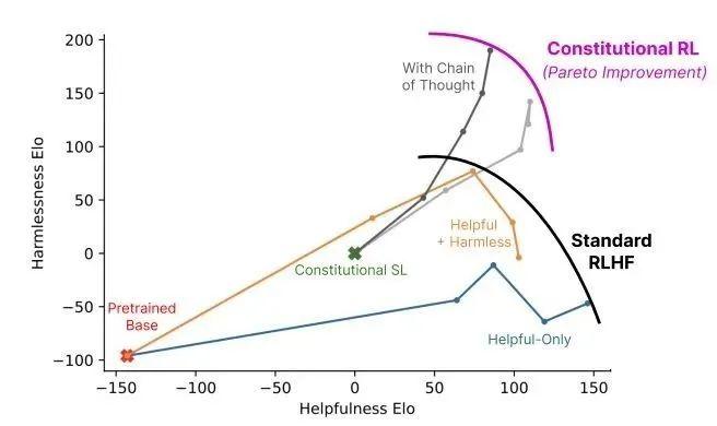Claude 和 ChatGPT 都依赖于强化学习(RL)来训练偏好(preference)模型。CAI(Constitutional AI)也是建立在RLHF的基础之上,不同之处在于,CAI的排序过程使用模型(而非人类)对所有生成的输出结果提供一个初始排序结果。